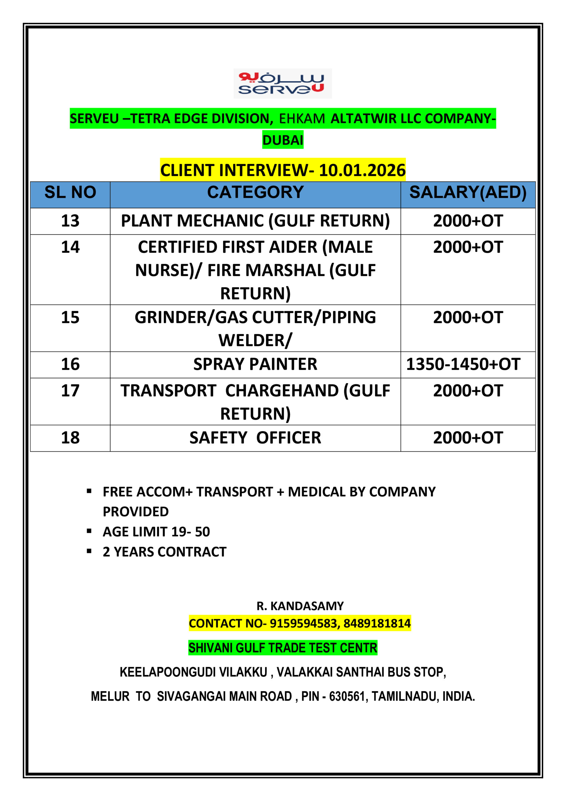 CERTIFIED FIRST AIDER (MALE NURSE)/ FIRE MARSHAL (GULF RETURN) |
