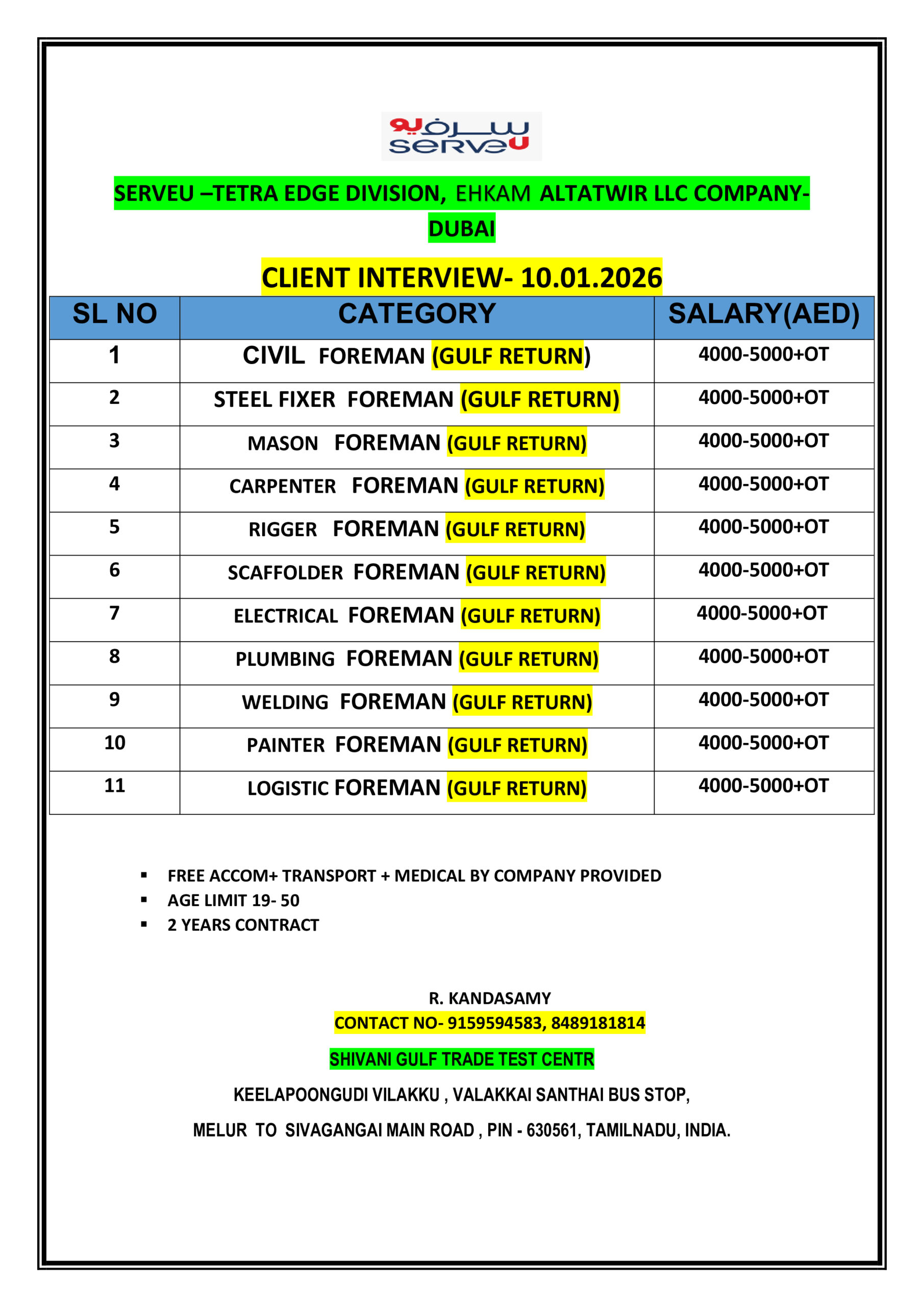 SCAFFOLDER FOREMAN (GULF RETURN) |