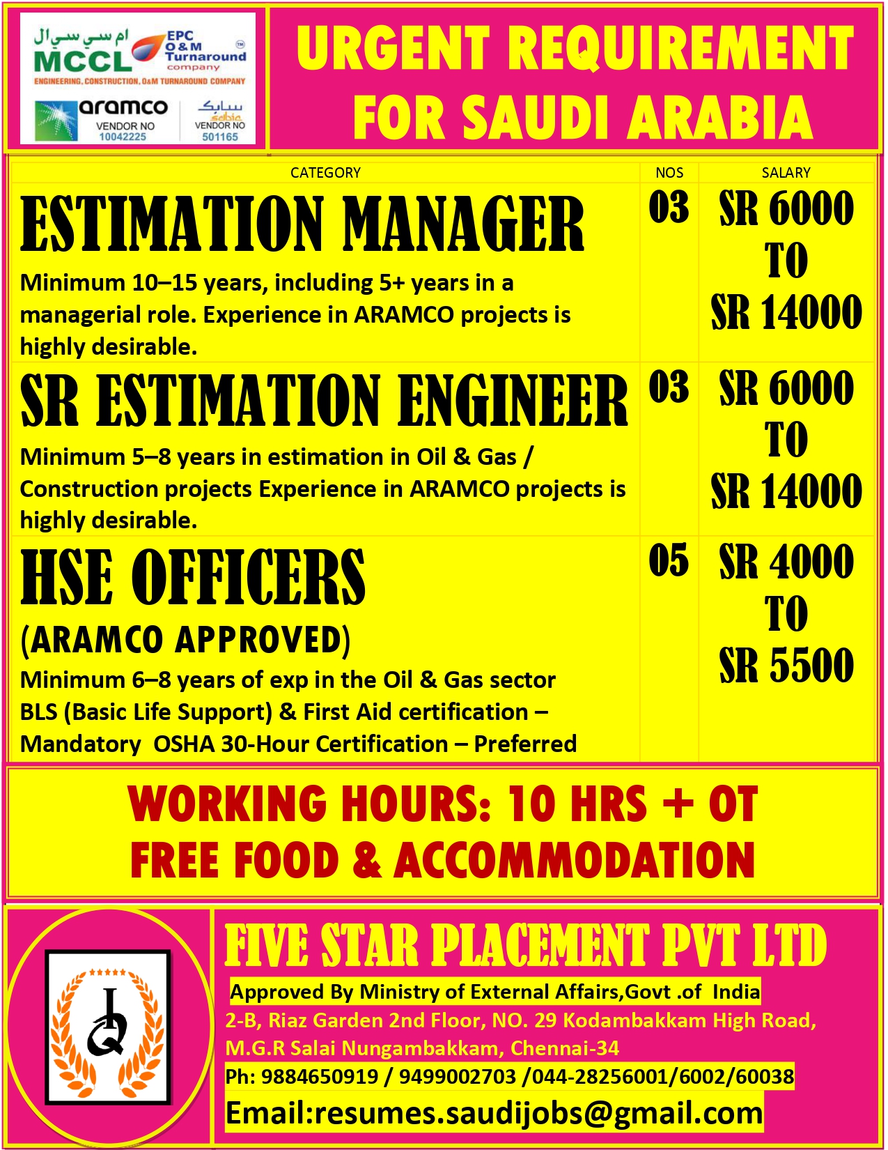 URGENT REQUIREMENT FOR SAUDI ARABIA