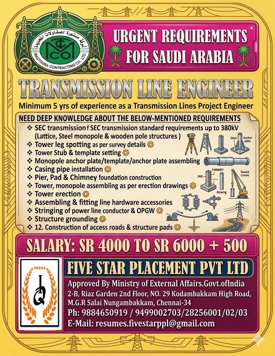 URGENT REQUIREMENT FOR SAUDI ARABIA