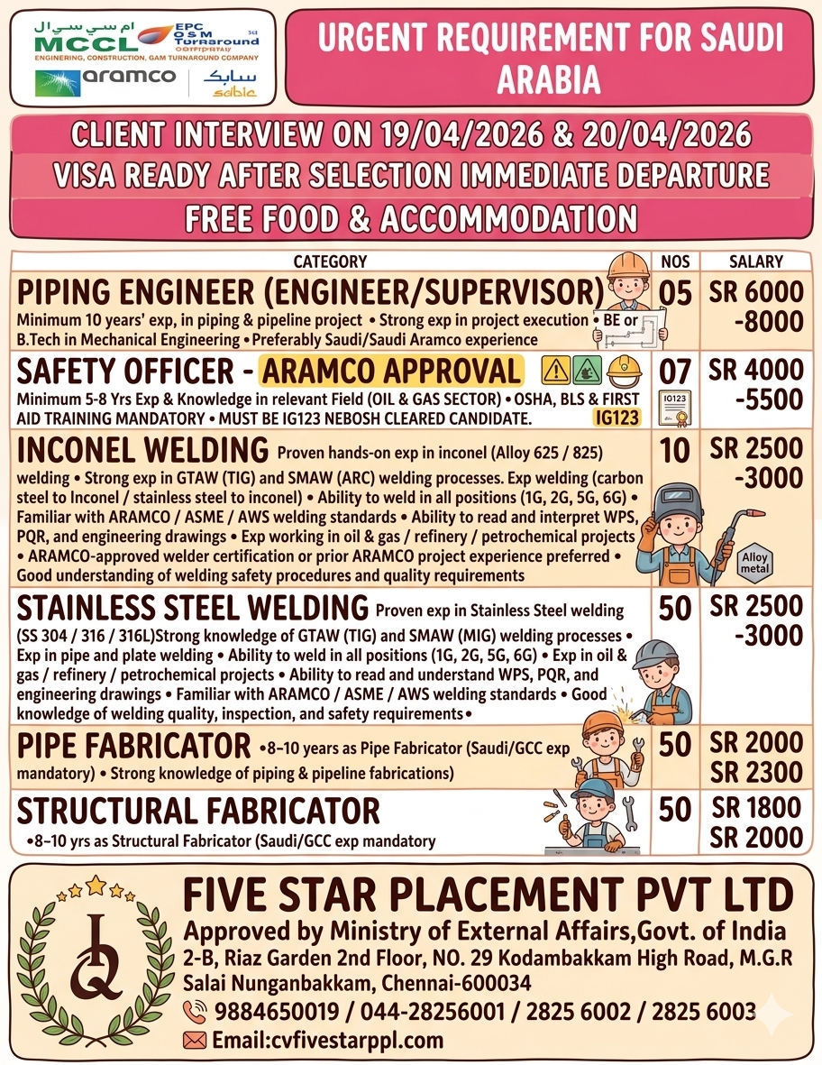 URGENT REQUIREMENT FOR SAUDI ARABIA