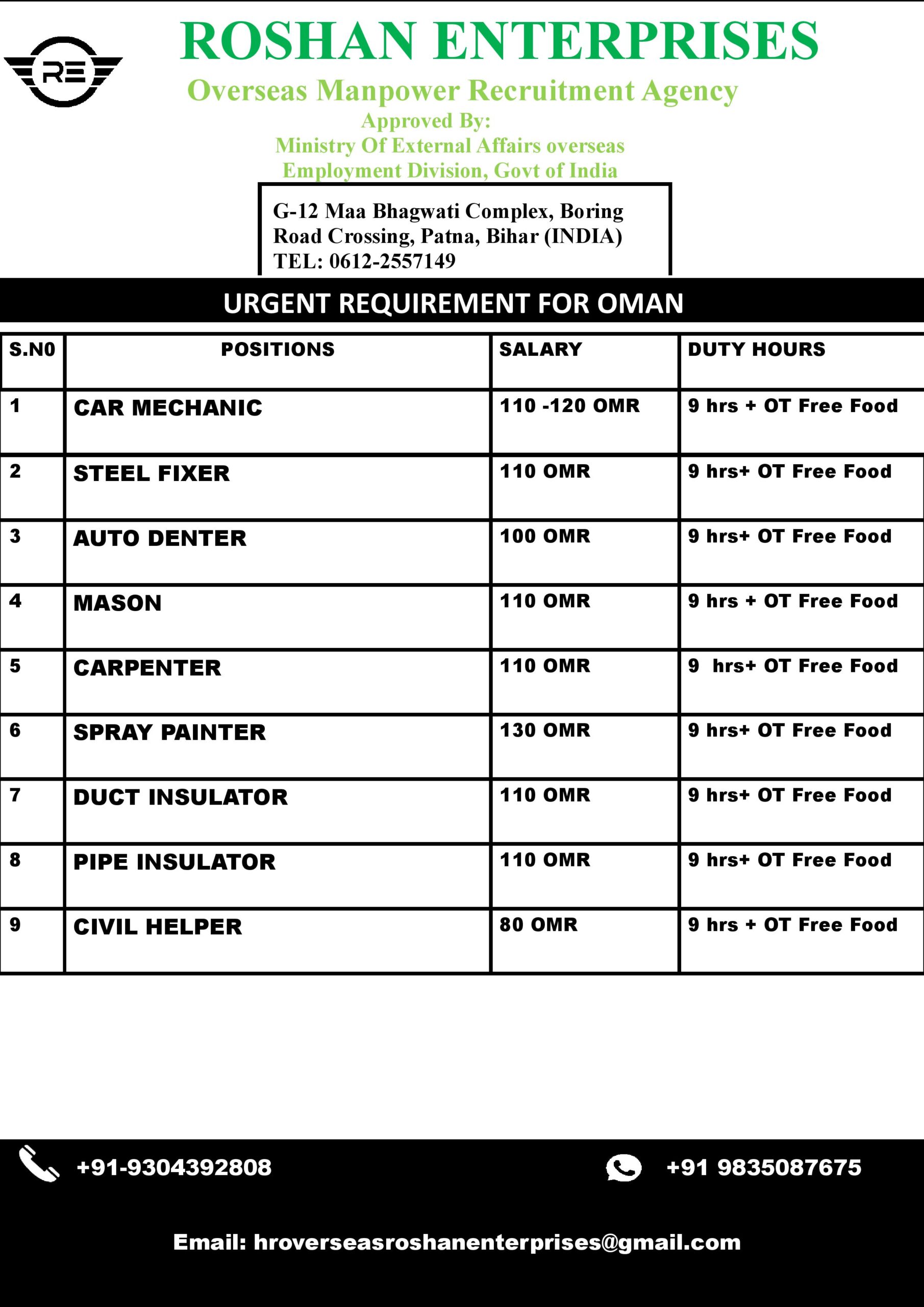 6 SPRAY PAINTER 130 OMR 9 hrs + OT Free Food